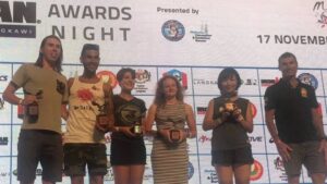 スタート1時間前に痛み止めを飲んでおいたので、肩の痛みもそんなに気にならずに泳げました。前回のマレーシアよりブイ(コースの目印)が少なかったですが、ずっと海底が見える超綺麗な海だったので比較的真っ直ぐ泳げていました(蛇行してしまうと泳距離も長くなってしまう)!途中魚の群れや小さなエイも見ながらマイペースにスイムアップ。実際に泳いだ距離は3918mでした。