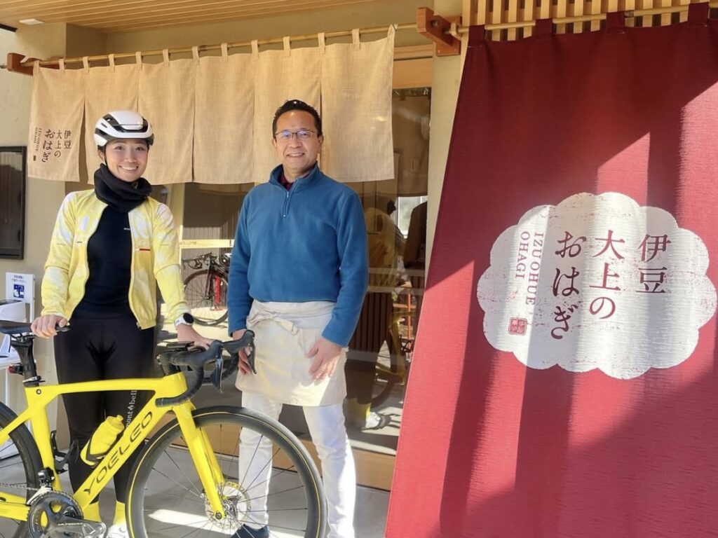 「伊豆大上のおはぎ」の店舗は東京2020の自転車トラック会場でもあった伊豆ベロドロームの近くにあります。少し塩気の効いたあんこが絶品で、「アスリートにも安心して食べてほしいおやつ」としてこだわり抜いた材料で作られていて本当にとっても美味しいのです!!今回の河津トライアスロンでも完走者特典として無料配布され、ずっと食べてみたかった!という参加者の方もいて、とても嬉しかったです◎